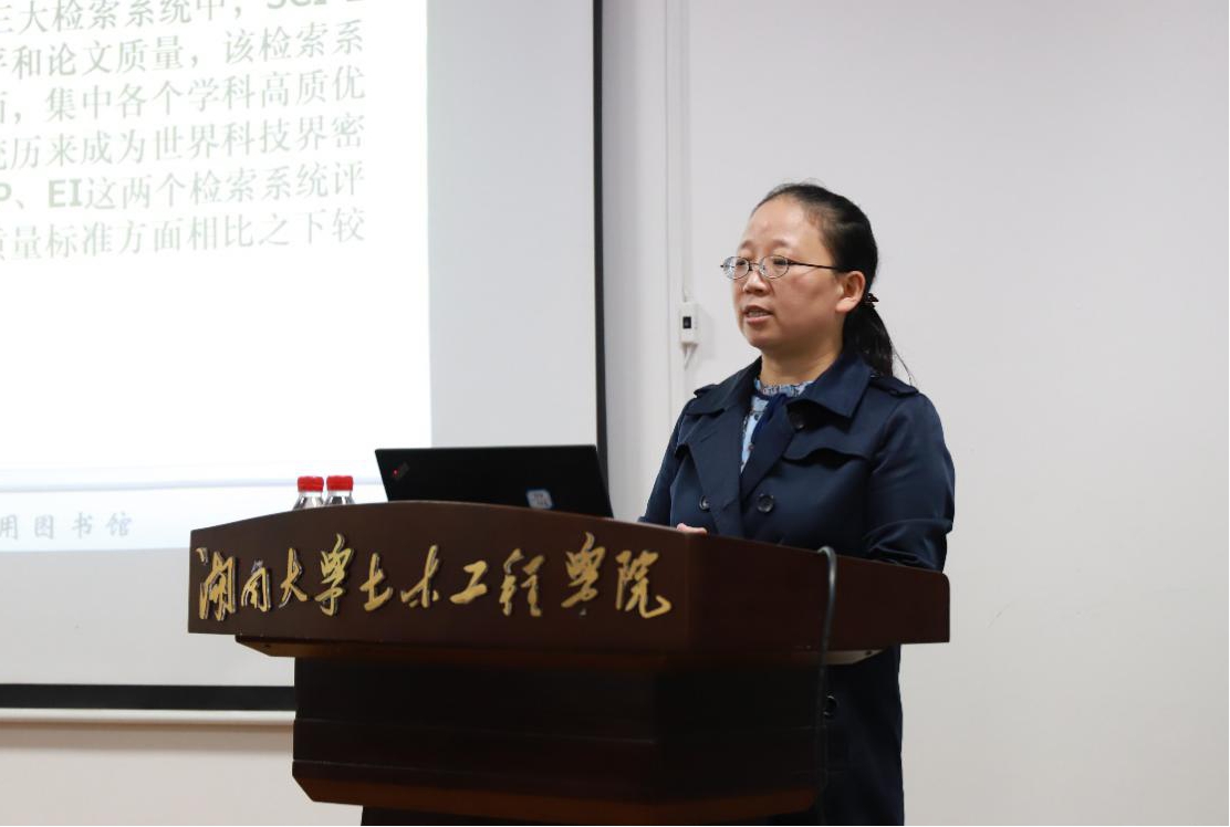 晁蓉老师围绕图书馆介绍、馆藏资源和服务内容、充分利用馆藏资源和学术论文与科研等四个方面进行了介绍,结合土木学科特点,有针对性地推荐中、外文数据库及其索引方法,对文献查阅、期刊投稿等科研相关工作提出建议。