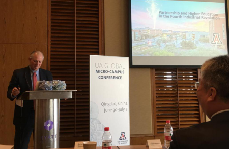 6月30日-7月2日,亚利桑那大学(简称UA)举办的主题为“重新定义国际化教育”微型校园会议(Micro-campus conference)在中国海洋大学举行,公司经理施周、副经理黄立葵、经理助理朱德举及国合处副处长周健、处长助理张根宝应邀参会。参会的还有来自于其它国家和地区的UA微型校园(Micro-campus)联合办学伙伴近百名代表。
