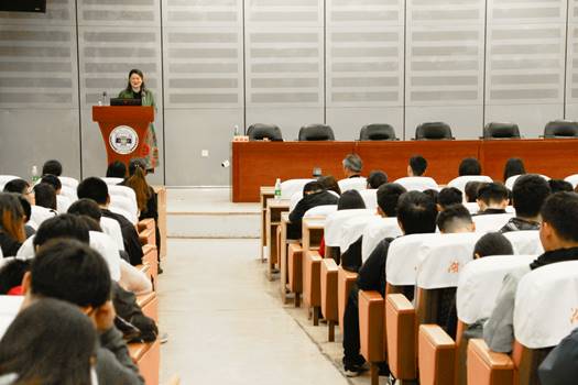 “生命是用来折腾的,越折腾越活得明白。”从父母和老师眼中的好孩子、好员工,到破釜沉舟留学新西兰、新加坡,再到回国创业,魏玛丽老师在分享自己成长过程的同时,也启发同学们,只有不断地认识自己的能力,才能更好地管理自己的能力。玛丽老师用她极具亲和力的讲解向大家展现了她的人格魅力,深深地吸引了大家。