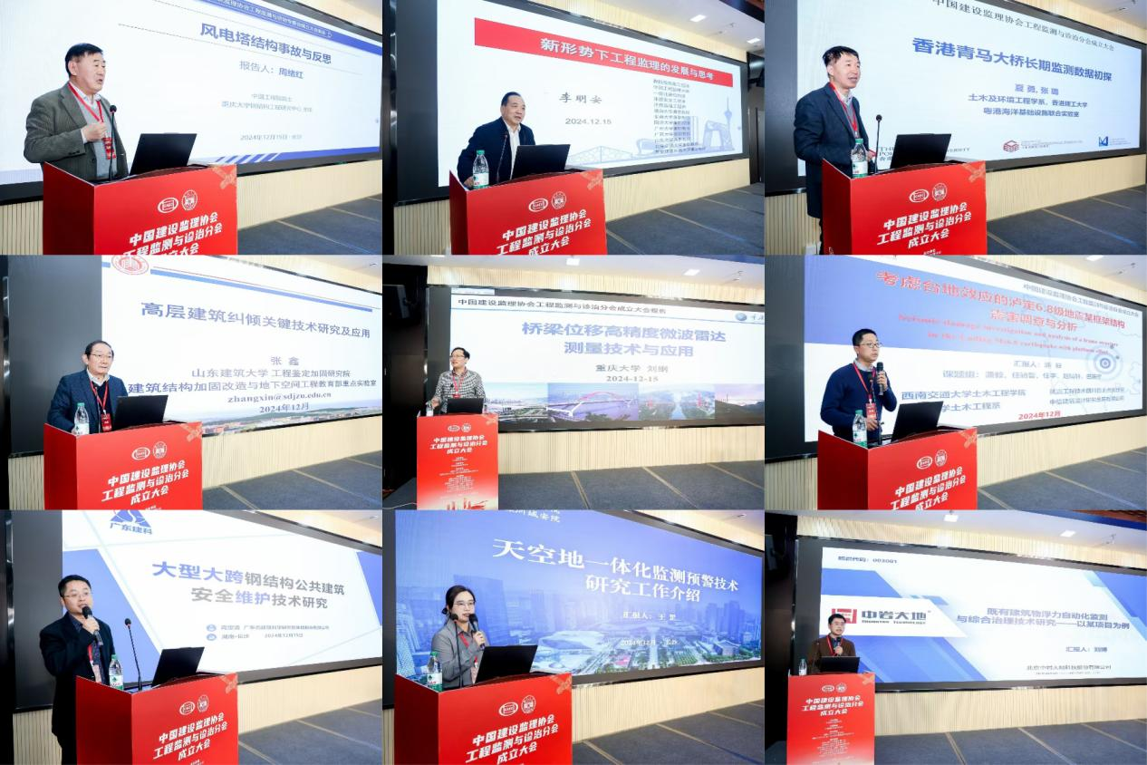 公司杰出员工周绪红院士和李明安大师、香港理工大学夏勇教授围绕风电塔结构事故与反思、新形势下工程监理的发展与思考、香港青马大桥长期数据初探进行了主旨报告,山东建筑大学张鑫教授、重庆大学刘纲教授、西南交通大学潘毅教授、广东省建筑科学研究院集团股份有限公司高望清教授级高工、深圳市城市公共安全技术研究院有限公司金楠特聘研究员(代表王罡教授级高工参会)、北京中岩大地科技股份有限公司技术总监刘博高工等6位专家,围绕高层建筑纠倾、桥梁位移监测、地震框架结构震害调查等方面进行了邀请报告,为与会者提供了极具实践参考价值的前沿研究。